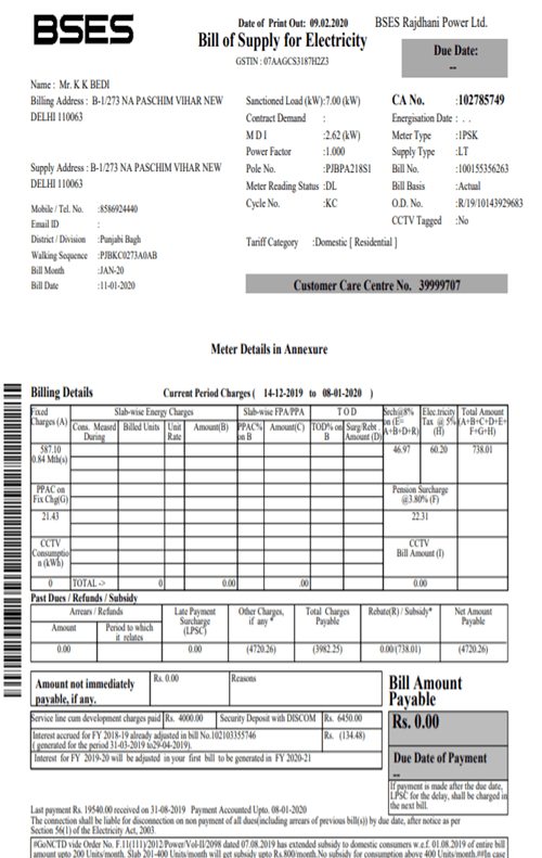 Mr. Chopra, 5 KW Vasant Kunj, New Delhi