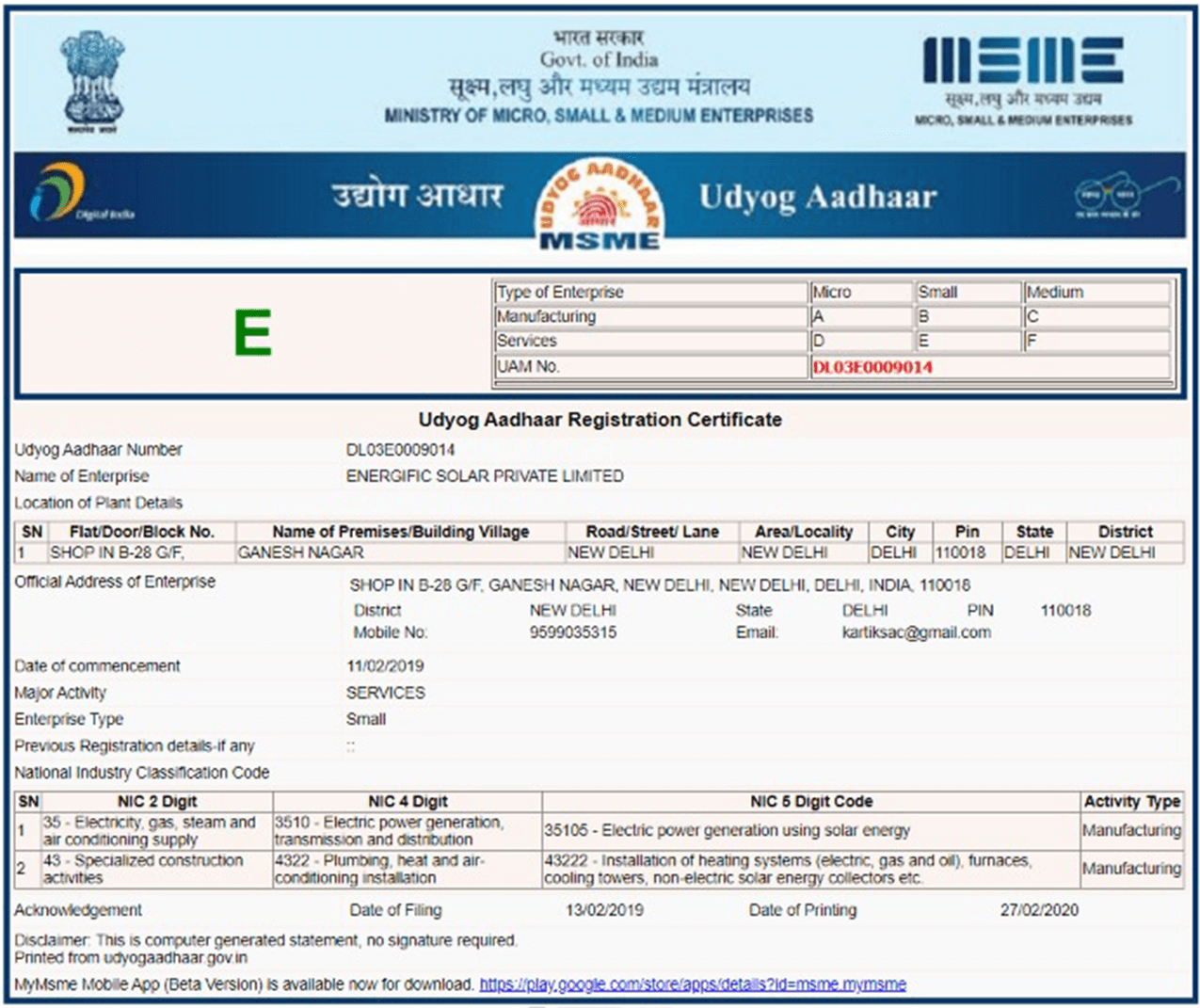 KING SOLAR is official trademark registered under Energific solar pvt ltd who is a partner of MSME (Ministry of small and medium enterprise), Govt Of Inida. The company is involved in solar EPC innovations and consultancy for various projects from 1 KW to 1000 KW.